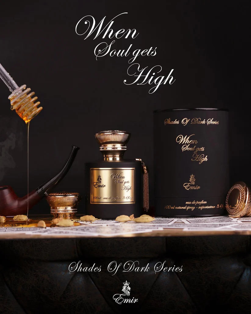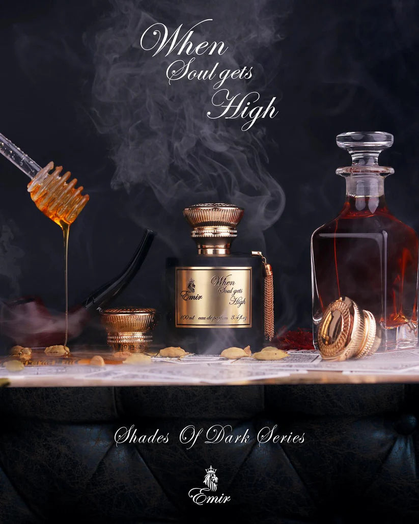 WHEN SOUL GETS HIGH is an Amber Woody fragrance for women and men. The fragrance is presented as an edition that will be a favorite of both men and women. It is composed of aromas of honey, fruit, wood, amber, and tobacco, with a hint of citrusy tact of bergamot, spicy nuances of saffron and cardamom, and a sweet touch of raspberry. A very realistic clean honey, with some fresh powderiness, the chamomile, some citruses, and the coriander-cardamom add a light spiced aspect to the scent.