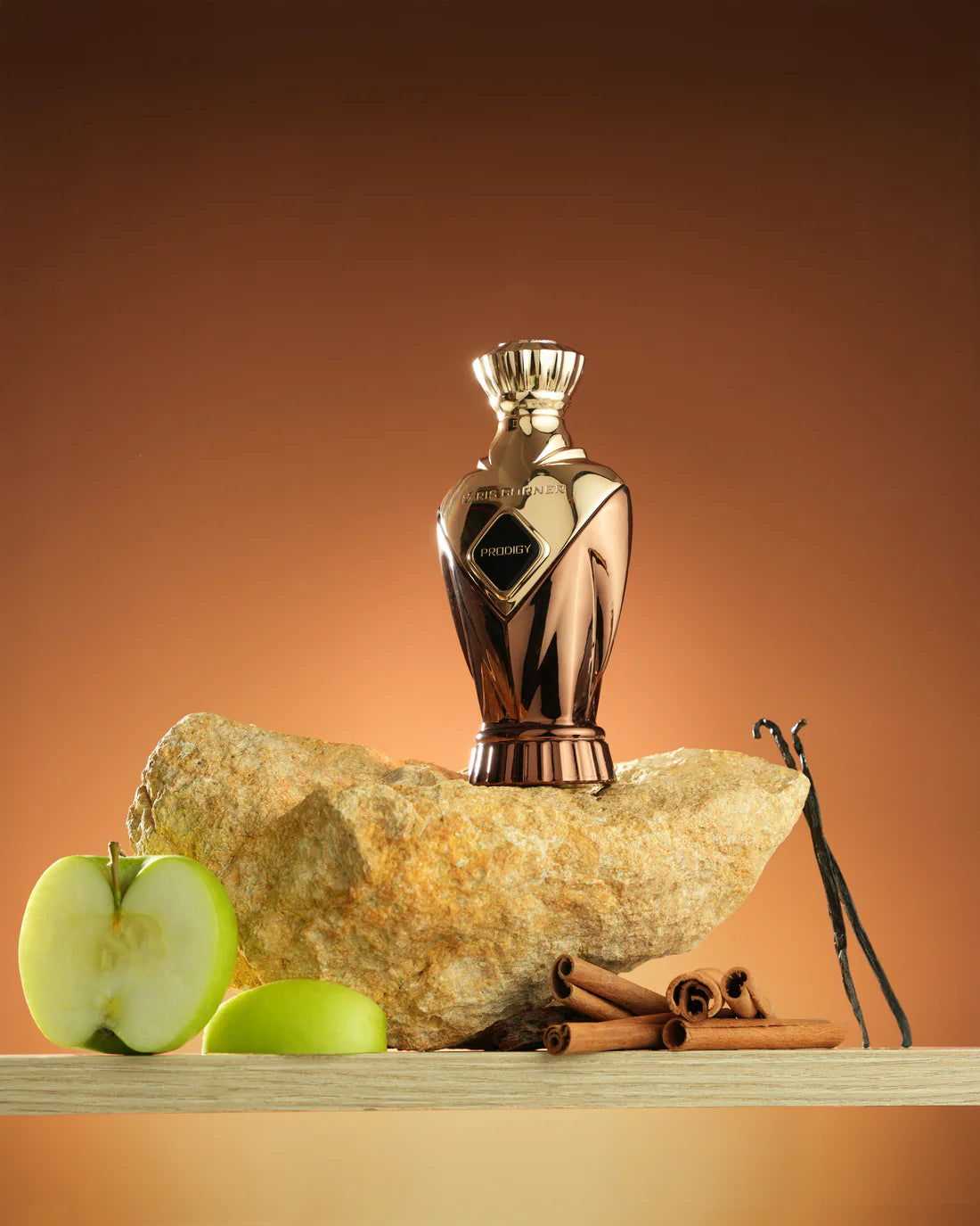 Ein Meisterwerk aus Ausgewogenheit und Anziehungskraft – Prodigy eröffnet mit der spritzigen Frische von Orange, der Wärme von Zimt und der knackigen Fruchtigkeit von grünem Apfel. Im Herzen vereinen sich zarte weiße Blüten mit der aromatischen Tiefe von Muskatellersalbei und strahlendem Bernstein – für eine leuchtende, anspruchsvolle Aura. Die Basisnote begeistert mit einer betörenden Kombination aus weicher Vanille, Tonkabohne, holzigen Ambernoten und sanftem Moschus – ein Duftausklang, der Geborgenheit schenkt und zugleich magnetisch wirkt. Für Visionäre, die keine Grenzen kennen und andere zu Großem inspirieren.